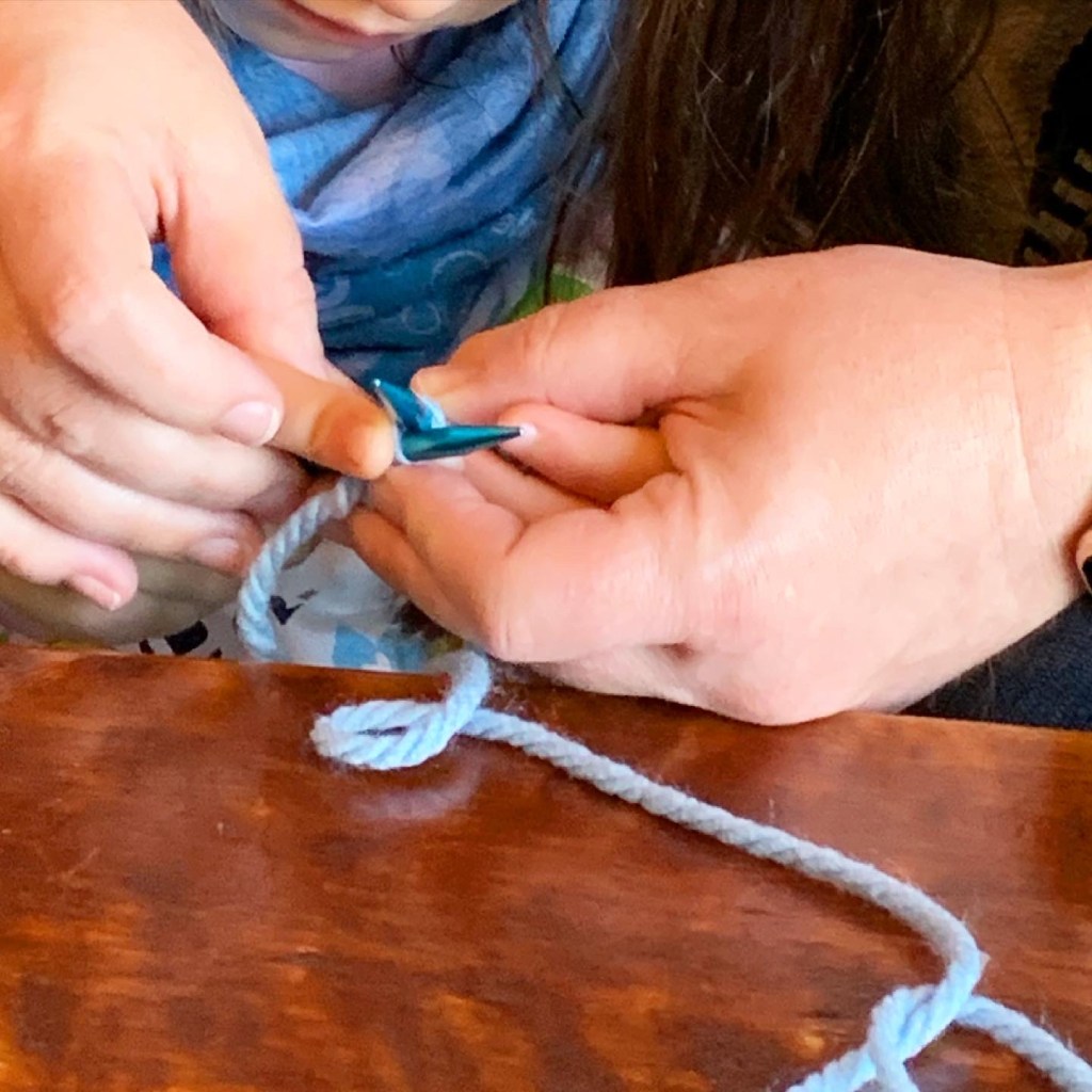 One of the reasons we ❤️homeschooling is how flexible we get to be in learning new things. . A sweet friend came over a few days ago to teach us to knit 🧶. She did a wonderful job of teaching us and we were all able to get a few rows completed. Yay! . I love that I get to learn right along with my littles. They are growing so quickly and the scales are tipping from I need a break to I want to cherish every moment 💜