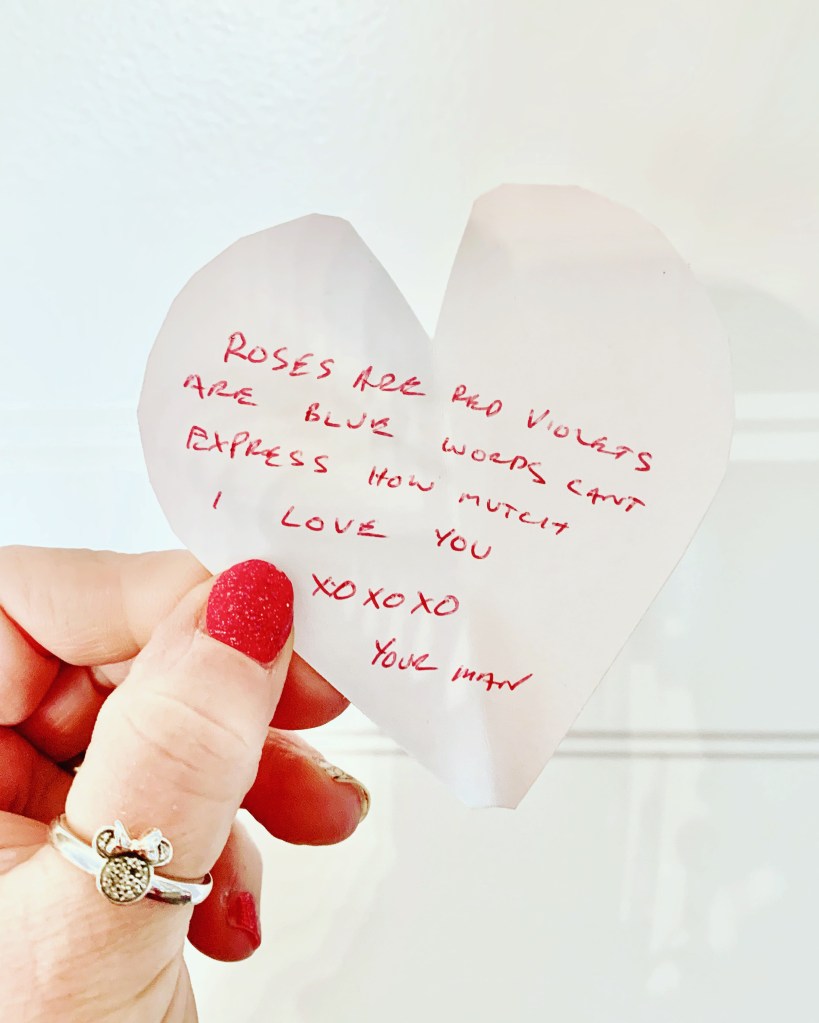 Loving each other and showing it can be as simple as a heart cut out of paper with a sweet note or simple poem❤️