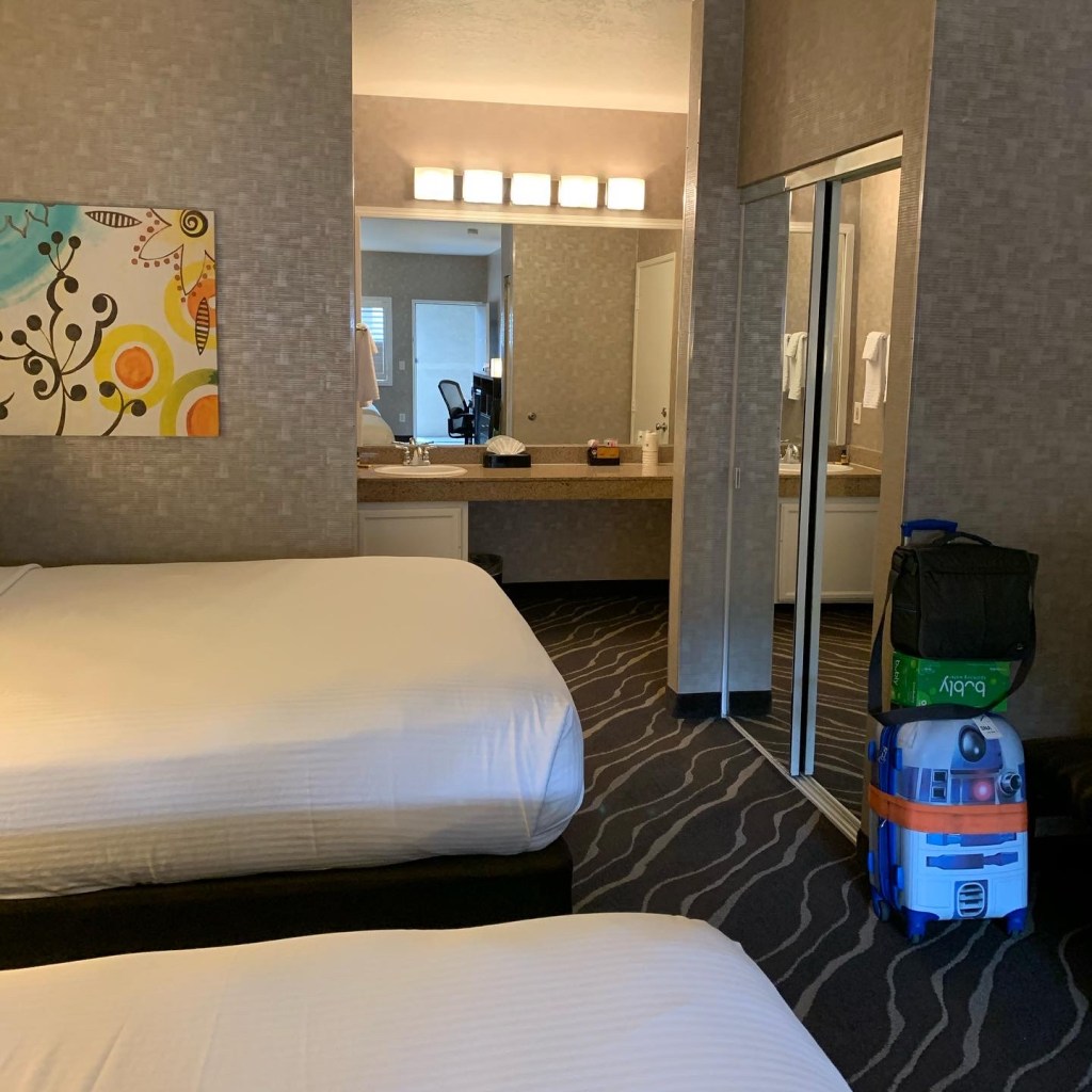 We recently stayed at the @bestwestern in Anaheim called the Best Western Plus Park Place Inn.It is one of Disneyland’s “Good Neighbor” Hotels. . One of the first things we loved was the sticker on the door certifying it was clean and ready . . Upon entering , we were pleasantly surprised. Since our last stay a few years ago the rooms had been remodeled and had a nice clean, crisp feel. . The rooms come with a good size fridge and with a coffee maker and supplies . . Some of the things we really loved were the door between our two rooms that we could open to go back and forth. The beds and couch were comfortable and we all woke up feeling refreshed . . Oh and this hotel is directly across from @disneyland!!!That is an amazing perk of staying at this property. . There is also a bagged breakfast to go that included a pastry, orange and bottled water you can pick up as you walk to the park. . The price point was great as well! We paid less then a 100$ a night off season but with the parks opened now the prices can range. We would stay here again if the price was under $200.It’s a great value for the location and room and it easily fits a family of 5 or larger with the connecting door between the rooms✨