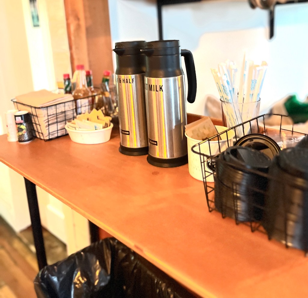 The drawback is the mugs. We love having a mug in hand to enjoy our espresso with froth art as we meet with others but we have found that we get a mug 1 out of 3 times and the other visits have been disposable. So be prepared you may not get a mug .