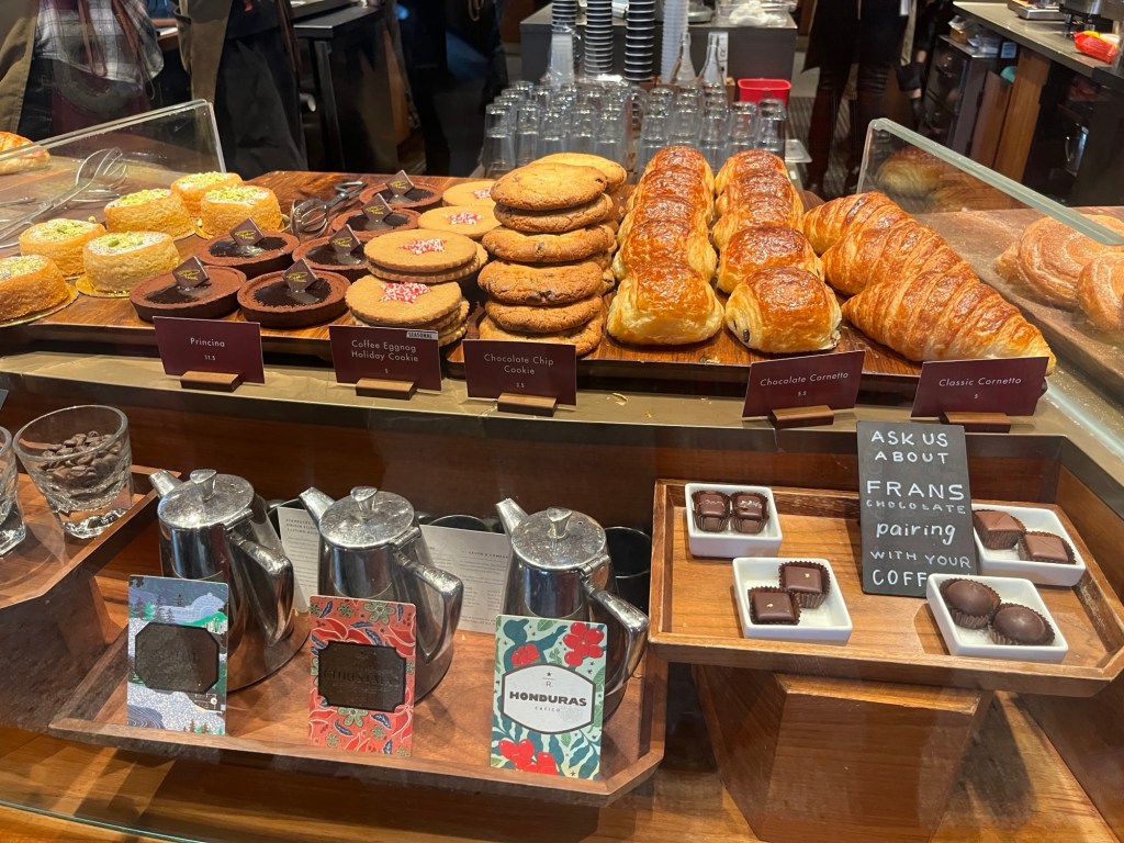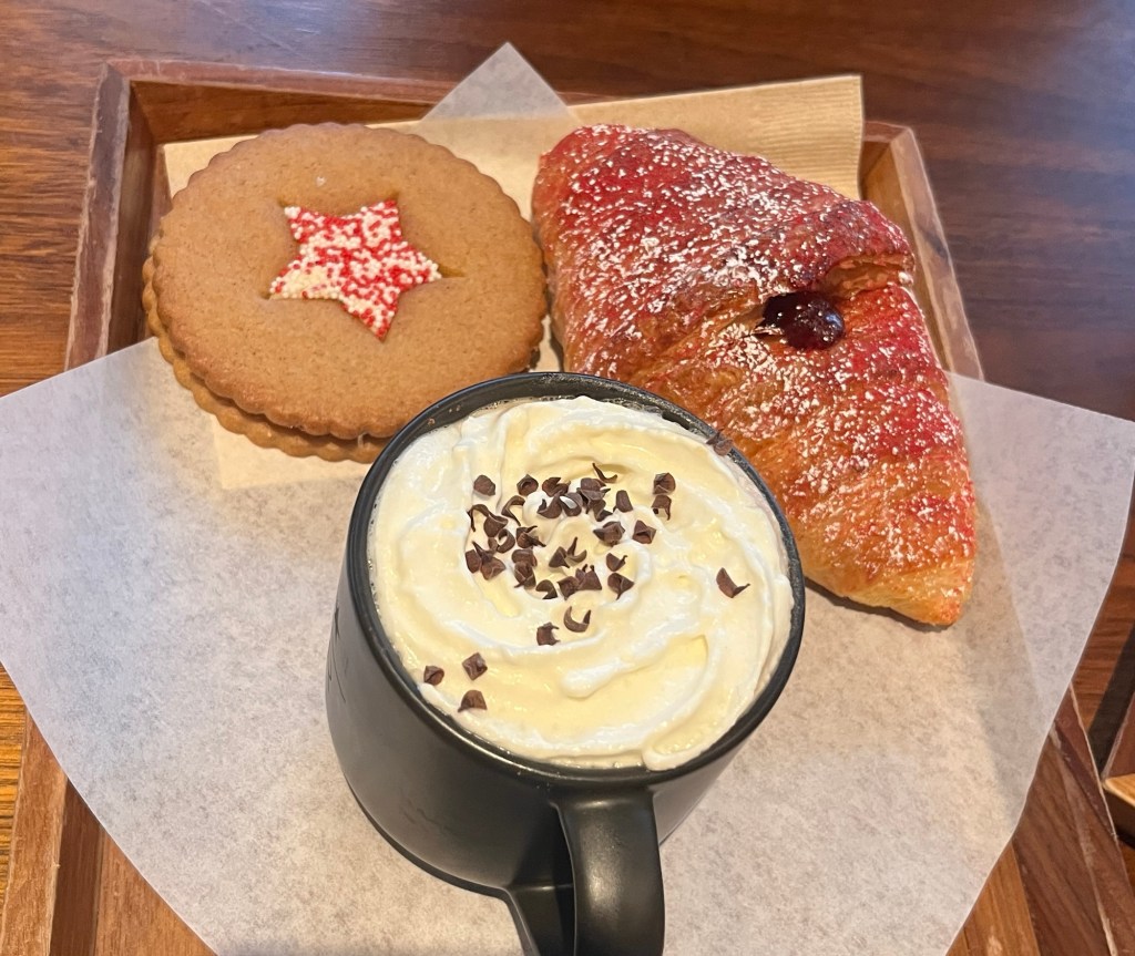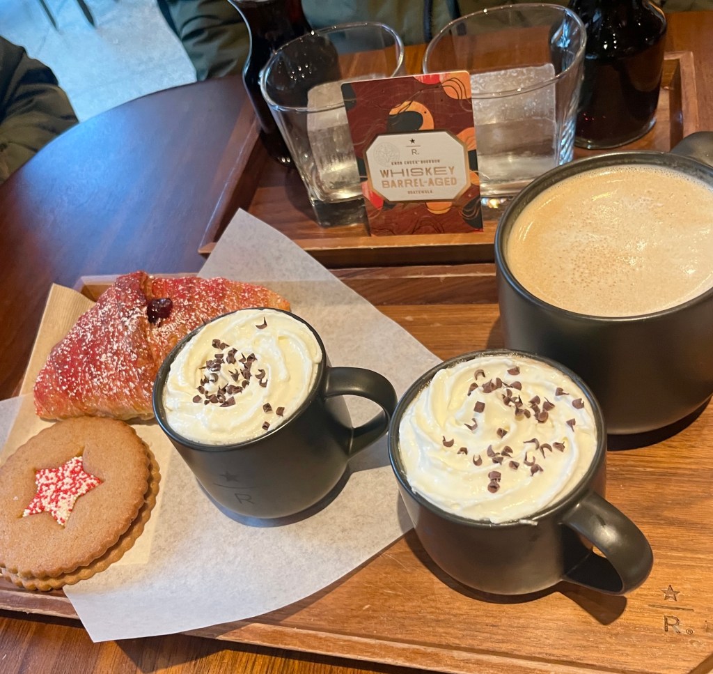 We went right before Christmas to try some of the holiday flavors, like the Starbucks Reserve peppermint mocha, which by the way was delicious! The eggnog cookie was a fun treat that had the sprinkled star, the raspberry cornetto was delish , and my husband always looks forward to the Whiskey Cold Brew when we visit.