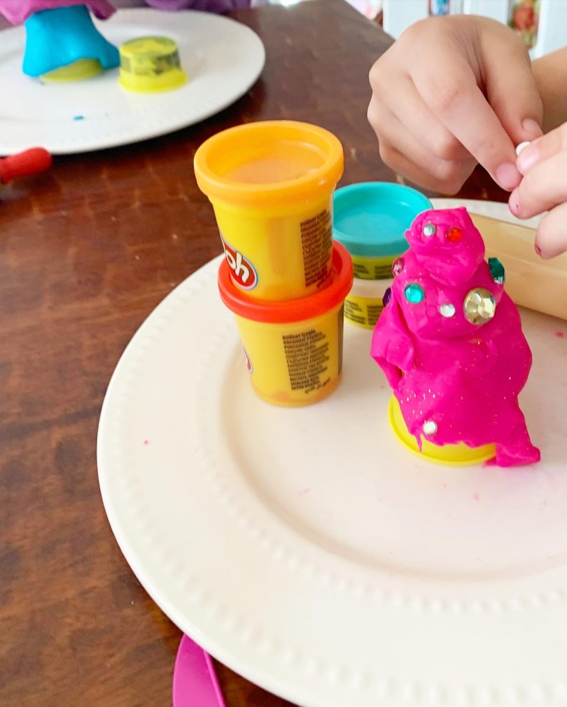 It turned out so cute! My daughter had a friend over and they played with the kits making all kinds of creations. Ofcourse ,the sparkly jewels and glitter play-doh was their favorites ❤️And I caught the older kids stopping by to watch them and I think secretly wanting to play with it themselves 😁