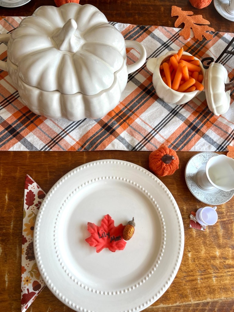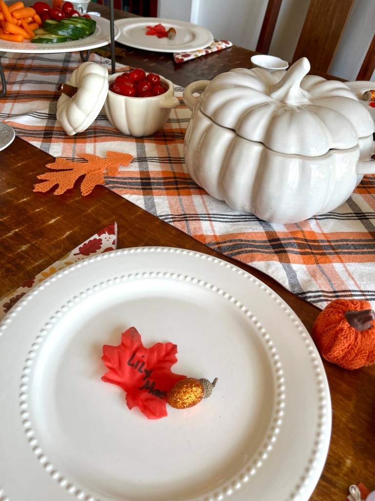 The leaves made cute place settings by just writing the name of the attendee on it and adding a glittered acorn to the plates. So cute!