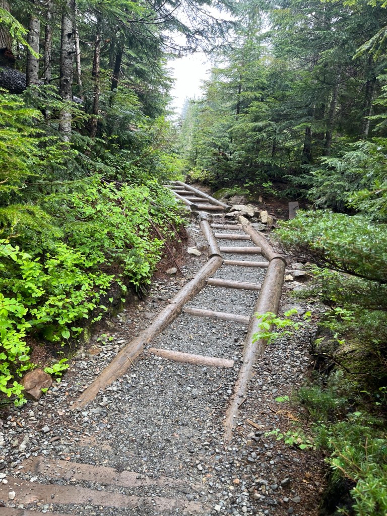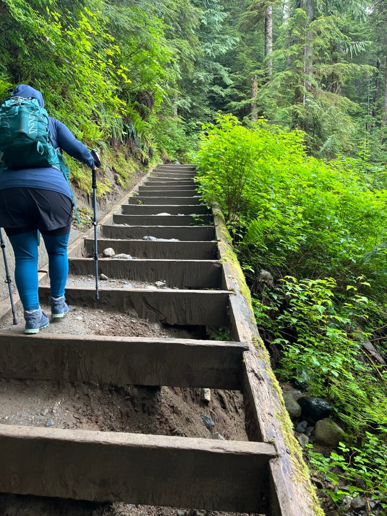 The trail starts steep but then levels out for a bit where you almost think ,โwhere is the elevation gain? โ Oh no worries .. the last part of the hike is all elevation.
