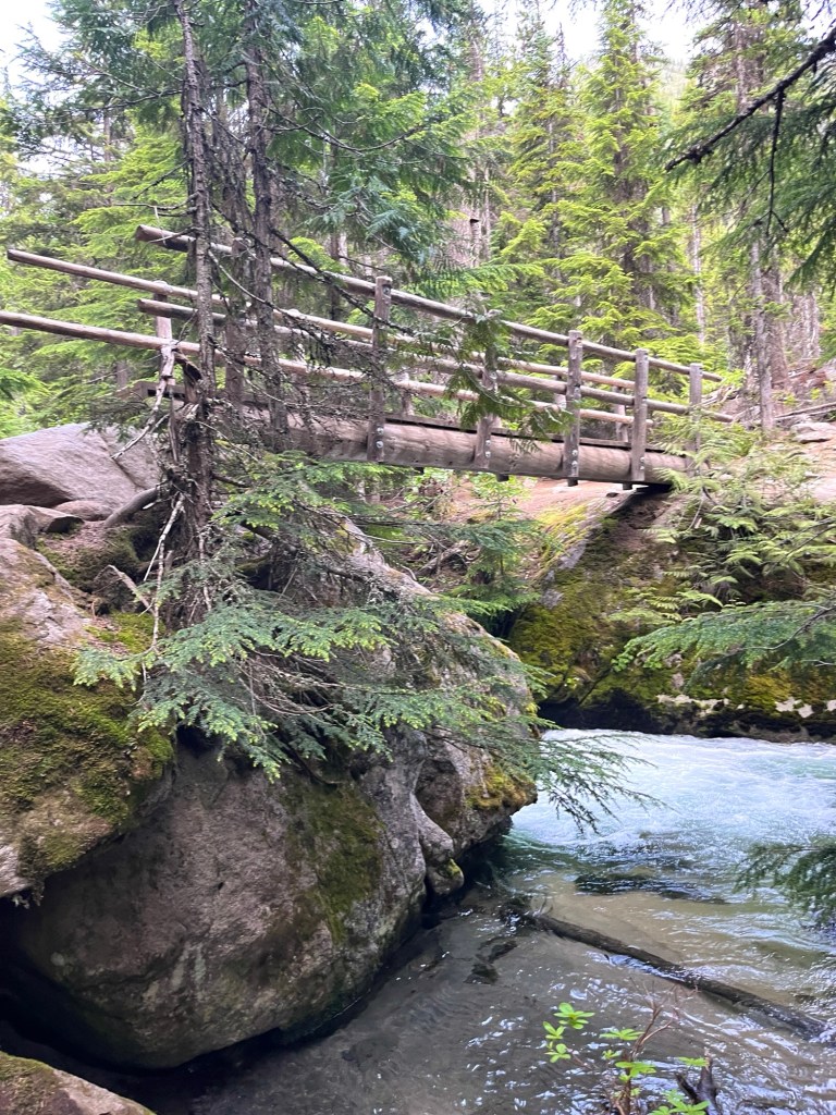 Iโm so thankful a friend told us about the trail from the road and that we stopped. It is a very short short hike down a beautiful path to the waterfallโค๏ธ A bonus looking back up at the bridge and path .. I felt like we were in a whole different world