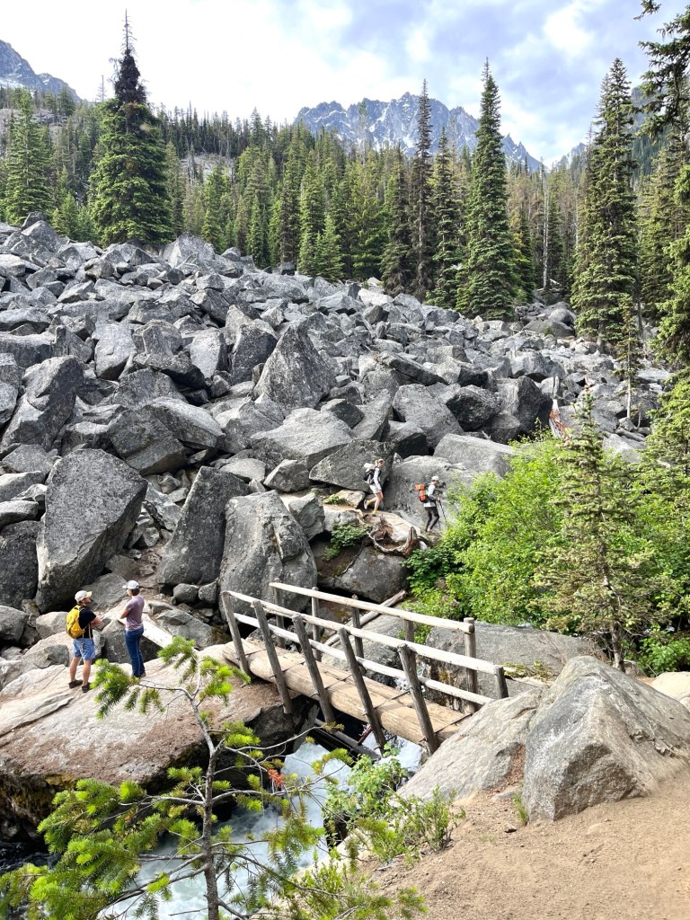 Colchuck Lake has easily become a yearly favorite . The first time I ever had the privilege of doing this hike it turned into a crazy day . We had an injury in our group, we experienced bouldering for the first time , many of us ran out of water , it took us way longer then we planned , and we met our first skinny dippers at the lake ๐ Since then, we have had so many laughs looking back at that first time.