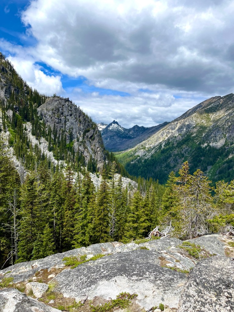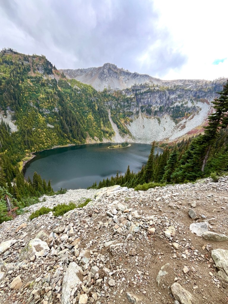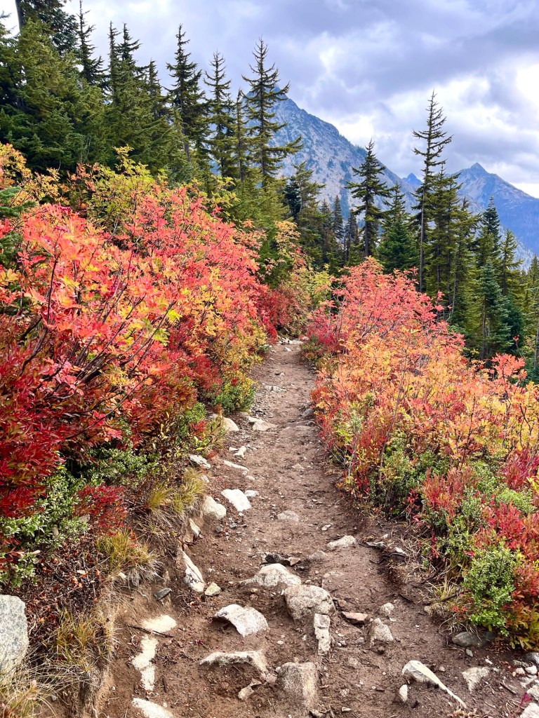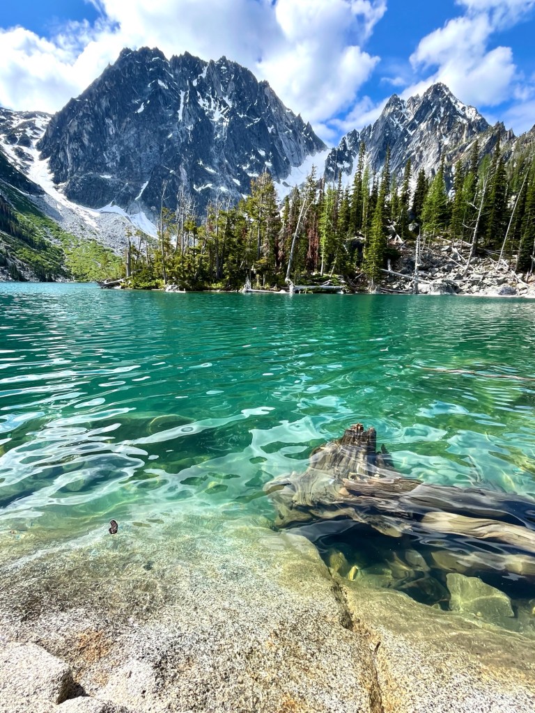 This hike is so captivating that when you first get the glimpses of the water you are in awe that you have just stumbled on this hidden gem . It is surrounded by two of Washingtonโs tallest peaks ,Dragontail and Colchuck Peak. Literally, I could stay there all day ! So beautiful and the water is so clear .