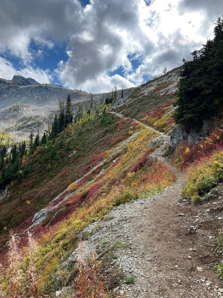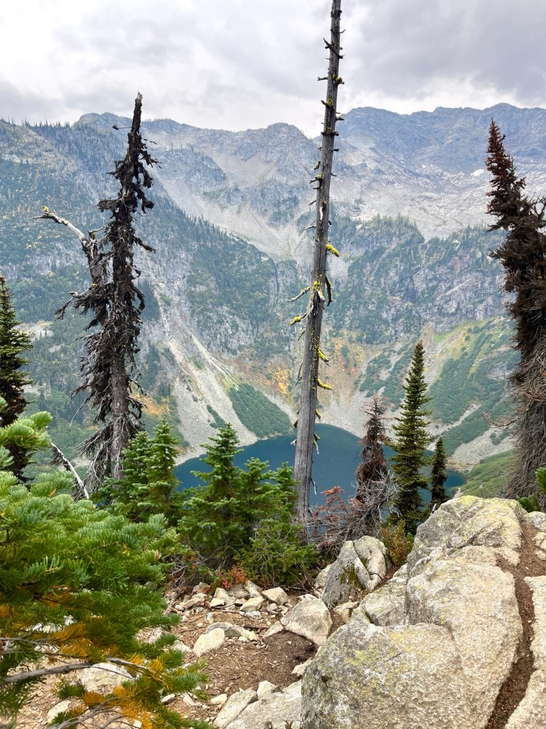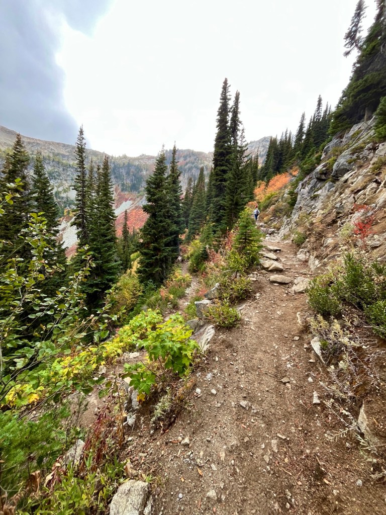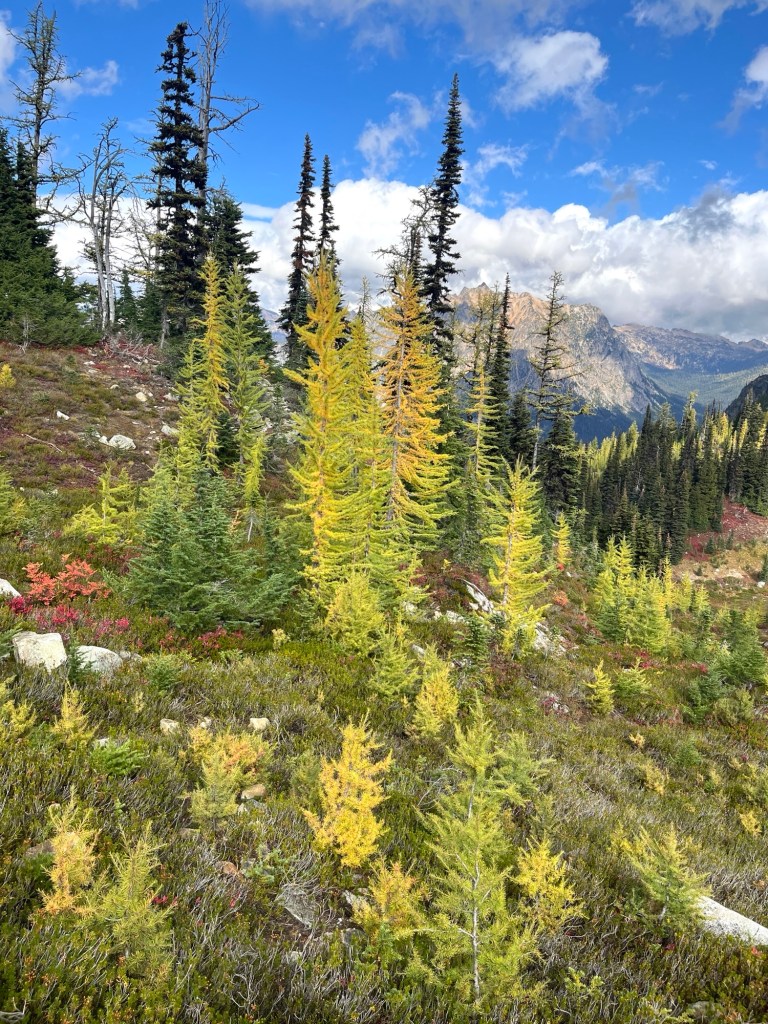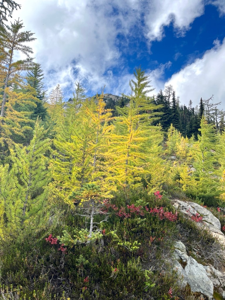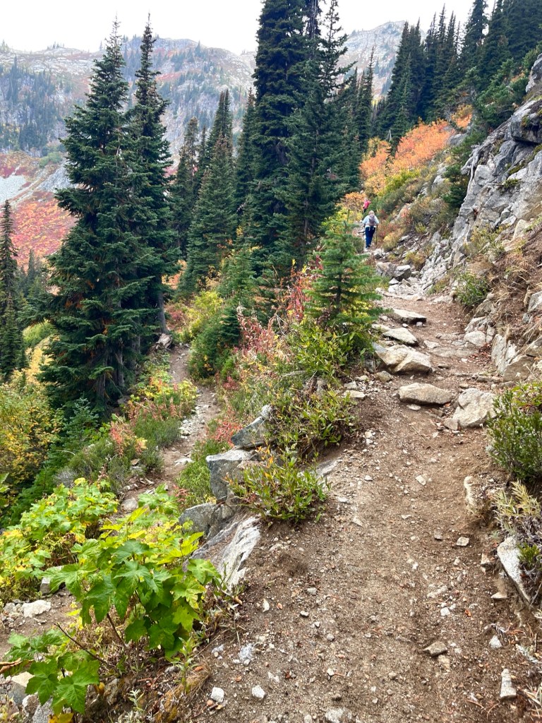 We also talked with another hiker .. Keith from Ohio who recommended a short trail off of the Maple Pass Loop โฆthe Wing Lake Trail ..where he captured the most beautiful hike through the larches .