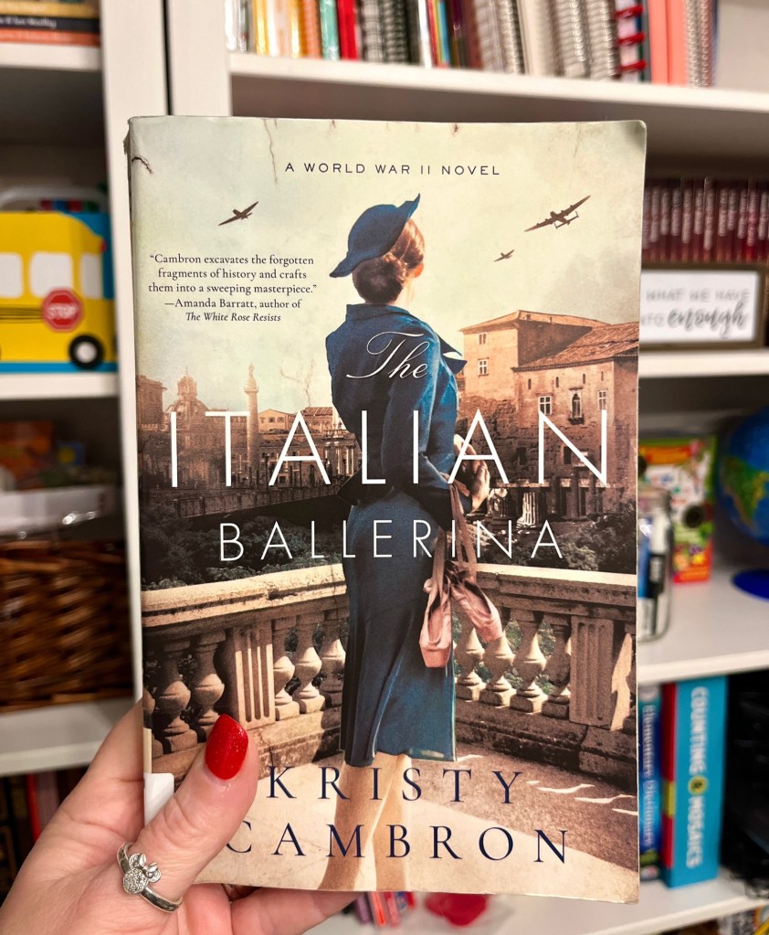 The Italian Ballerina by Kristy Cambron gives a rare look into the Nazi occupation of Rome and the fake Syndrome K of WW2 . Based on actual historical events it leaves you wanting to go back in history to reread events you may have missed. She gives the reader a wonderful story of the beauty even in the war from the London ballet stage and the allies storming the beaches of Salerno to the one moment that forever changed a soldier and a little girls life and those that got swept into life changing moments alongside them . The book bridges the beauty in how God can use each of us in a mighty way and create family where there is none.