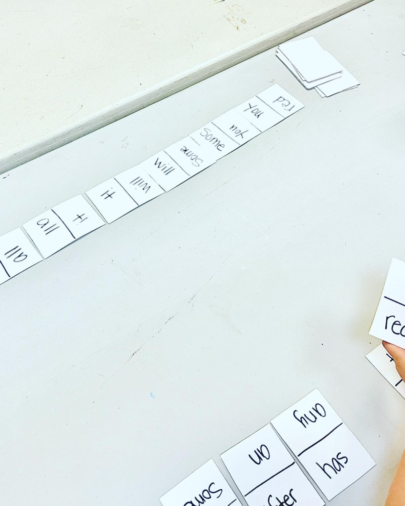 This was a bit of a learning curve .. for my own little one I gave her the whole sticker sheet and that was way to difficult to try to find the word. For my class , I decided to do it in stages with one strip of stickers at a time. That worked so much better!