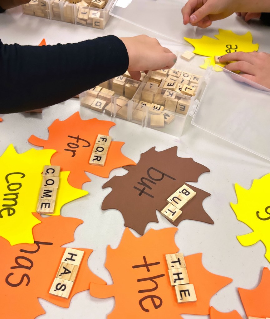 Learning sight words is so much fun when you get creative . I picked up these pumpkin eggs and filled them with scrabble tiles. I hid them and then let my students seek them out . Once we returned to the classroom ,they opened them and worked on unscrambling the scrabble tiles to reveal the sight word. So much fun for the whole class!