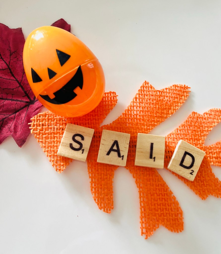 To get the link for the eggs and scrabble tiles comment 🎃 and I’ll send you the link to purchase :)