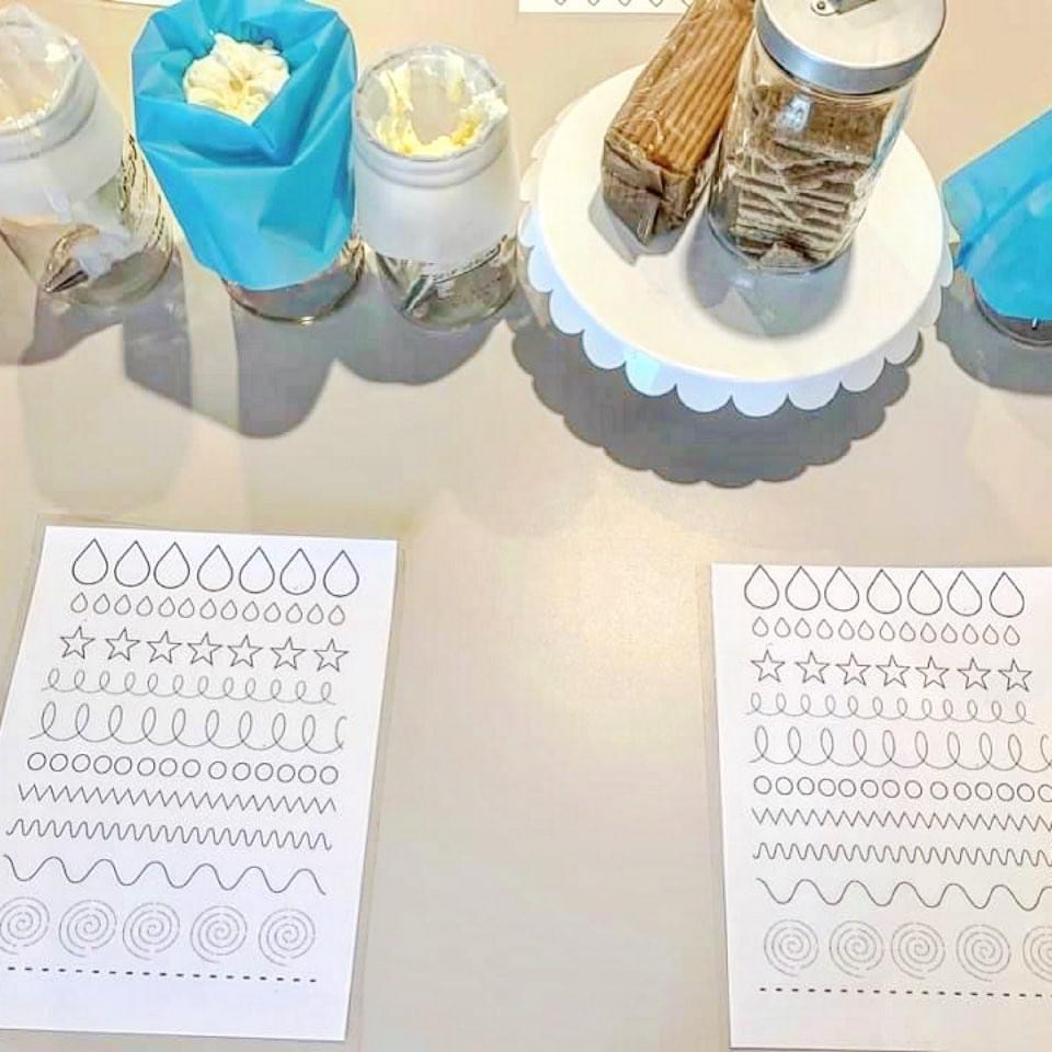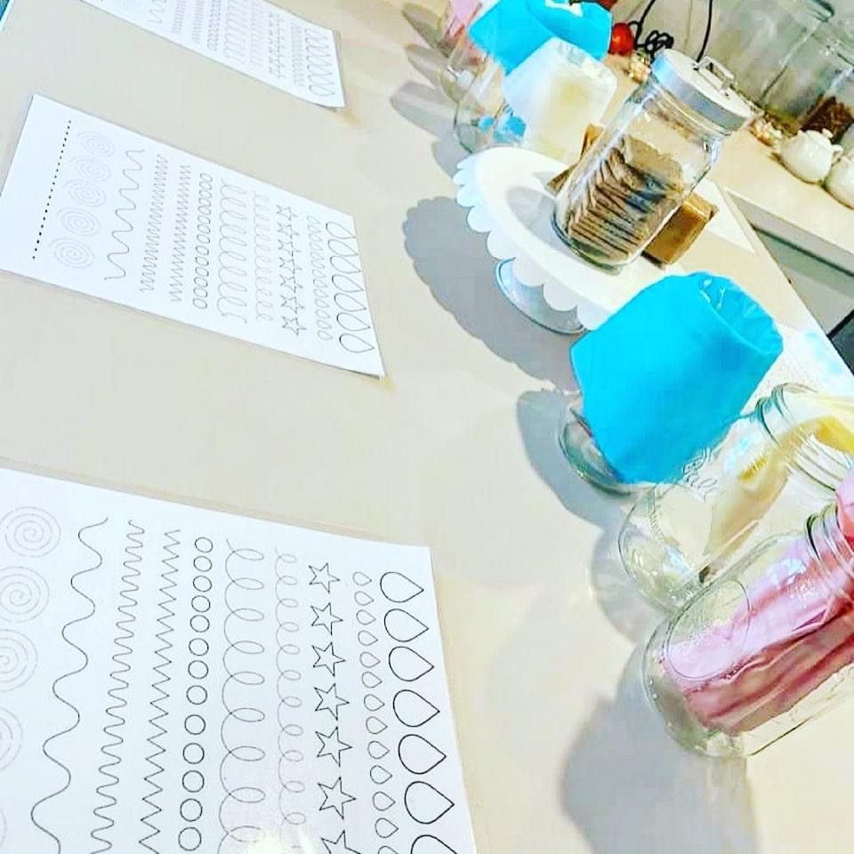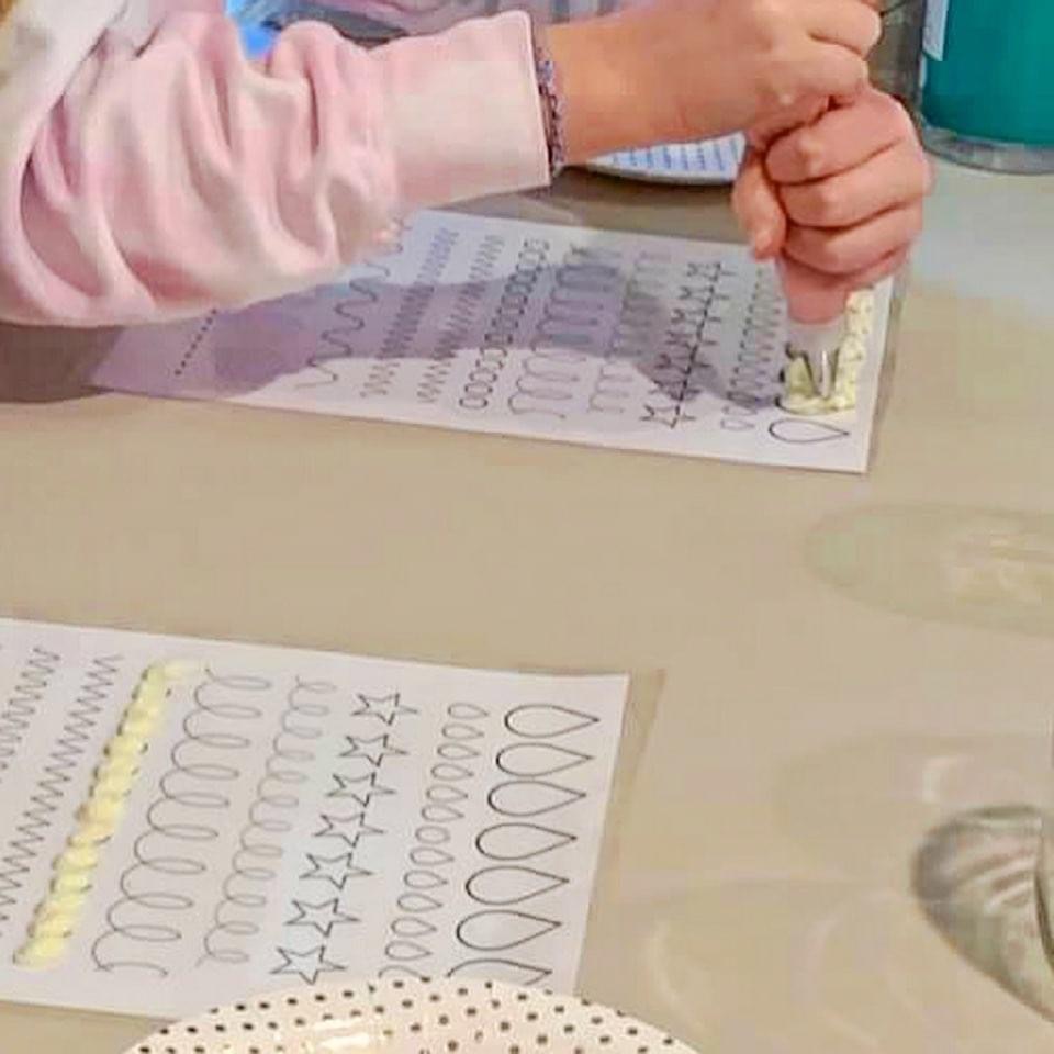 I printed these sheets and then laminated them so the girls could pipe directly on them.