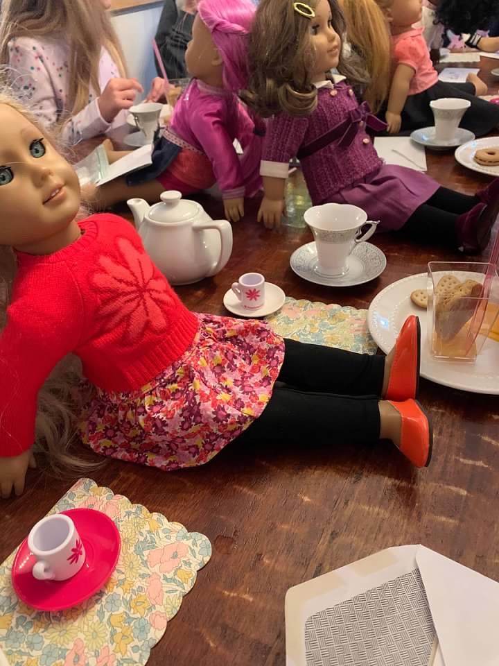 The girls are sent their monthly work they can do at home and then once a month ,I host a Tea Party where we can come together and talk about the doll of the month and what we learned. The girls also earn class money from doing their homework, answering questions and the vocabulary bingo that they can then purchase items for their dolls. So fun!