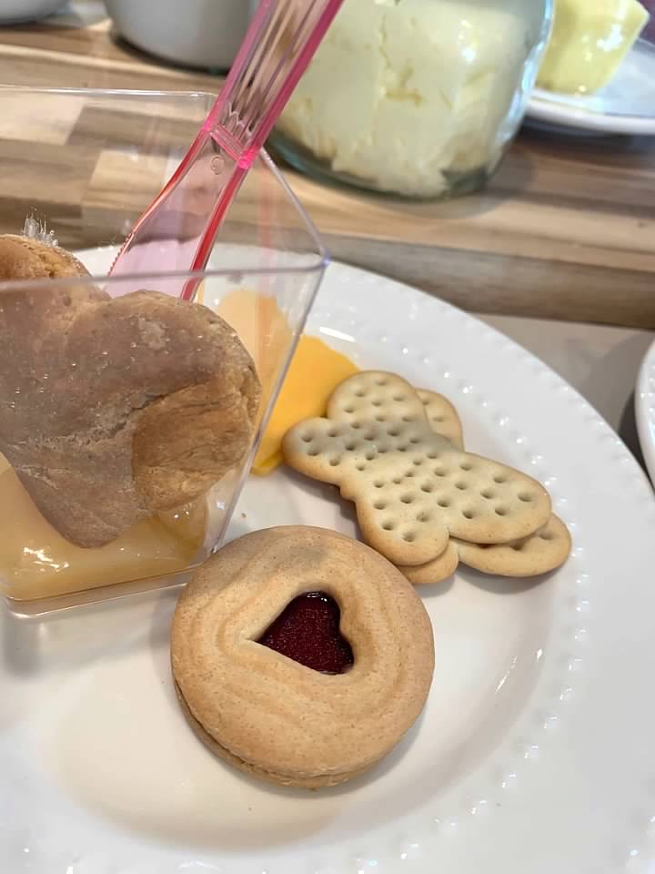 Our Tea Party was pioneer themed. We had heart shaped cakes , cheese and crackers.