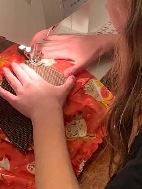The girls also had the opportunity to learn to sew. They made aprons to match their dolls. This was the perfect craft for this time era since aprons were such a big part of the pioneers and their daily lives.