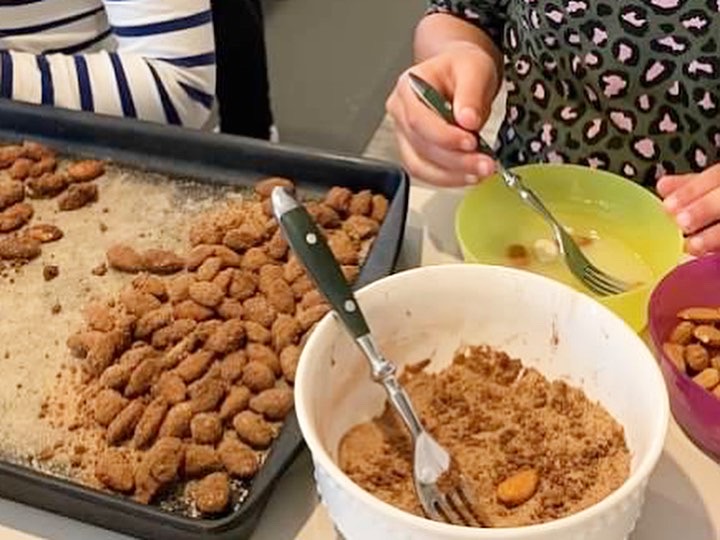We also worked on coating the almonds in between the butter so we rotated everyone through to have a chance to make the spiced nuts.