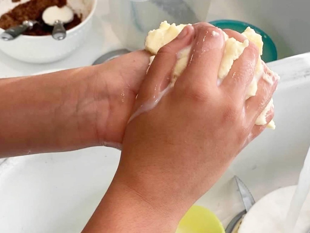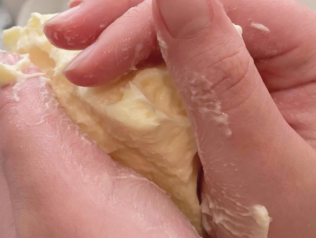 The butter took lots and lots of shaking the heavy cream .. then letting it sit and then shaking throughout which gave us two products, A cream to use with our scones and then shaking some more produced the butter.