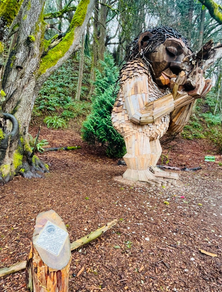 Bruun Idun, one of the Thomas Dambo’s Northwest Trolls, lives at Lincoln Park in West Seattle. She is one of the six trolls that the Danish artist has made from recycled materials and has installed around the Northwest .