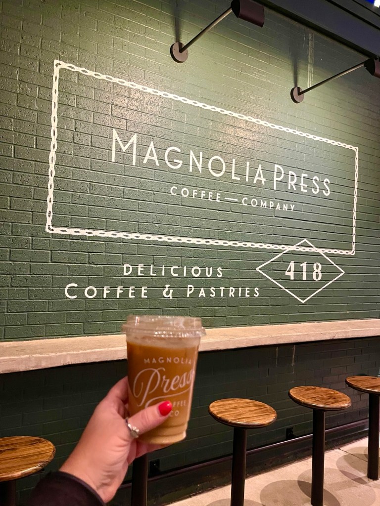 I was most excited to try Magnolia Press. I ordered an iced Americano, and it hit the spot. If you’re planning on shopping as well, be sure to look for deals in the stores—they had a free drink with the purchase of a mug, during the time we visited.